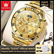 OLEVS 2926 Men's Watch Luxury Brand Gold Waterproof Calendar Moon Phase Chronograph Top Fashion Stainless Steel Men Quartz Watch