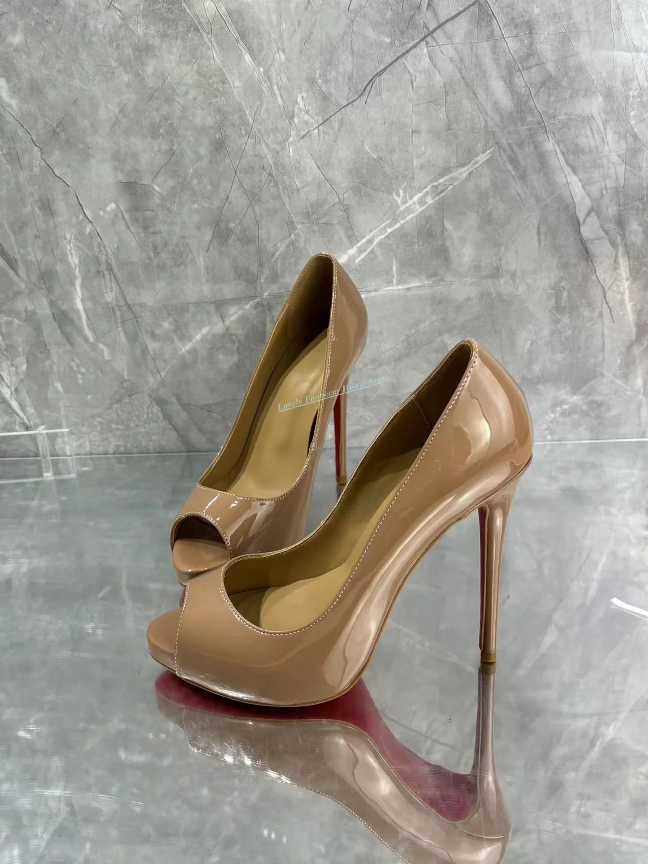 Women’s Leather Peep Toe High Heels - as pic 12cm heel / 37 / CHINA