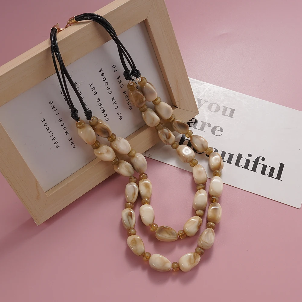 Women's Bohemian Multi Layer Beaded Necklace Vintage Resin Bead Statement Choker Fashion Unique Jewelry Accessory Trendy Gift for Her
